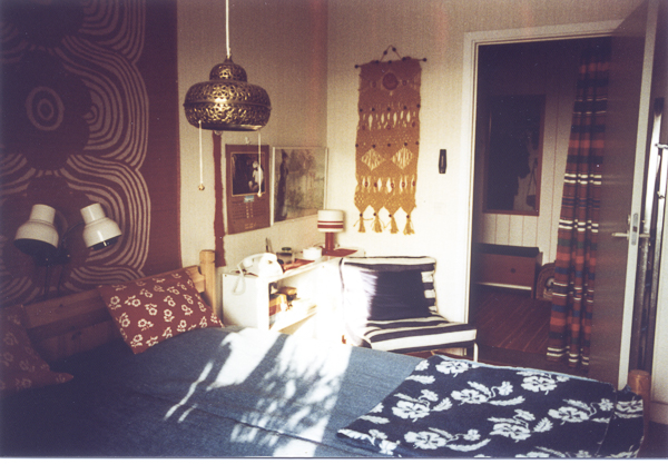 sovrum_5 That bedspread still exists. The yellow makramé on the wall was made by me. FacebookPinterestEmailTwitterPrint